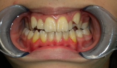 Riallineamento dentale con trattamento ortodontico fisso, tecnica MBT e sbiancamento con tecnologia LED.